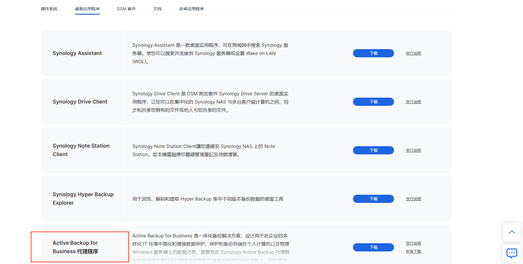 下拉选择桌面应用程序,选择备份代理,点击下载,自行选择版本