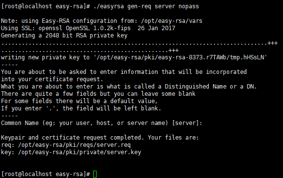 ./easyrsa gen-req server nopass