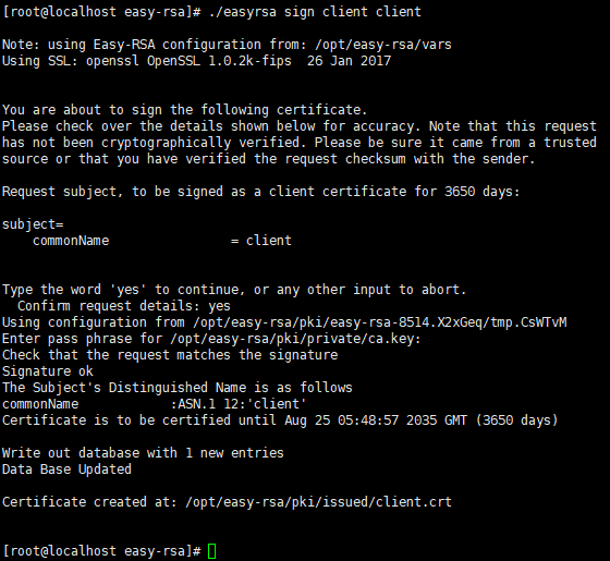 ./easyrsa sign client client