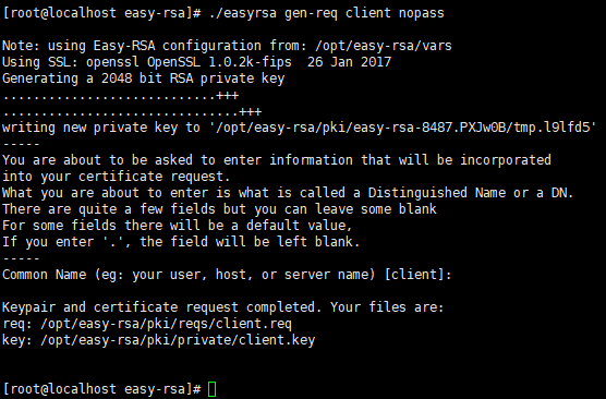 ./easyrsa gen-req client nopass